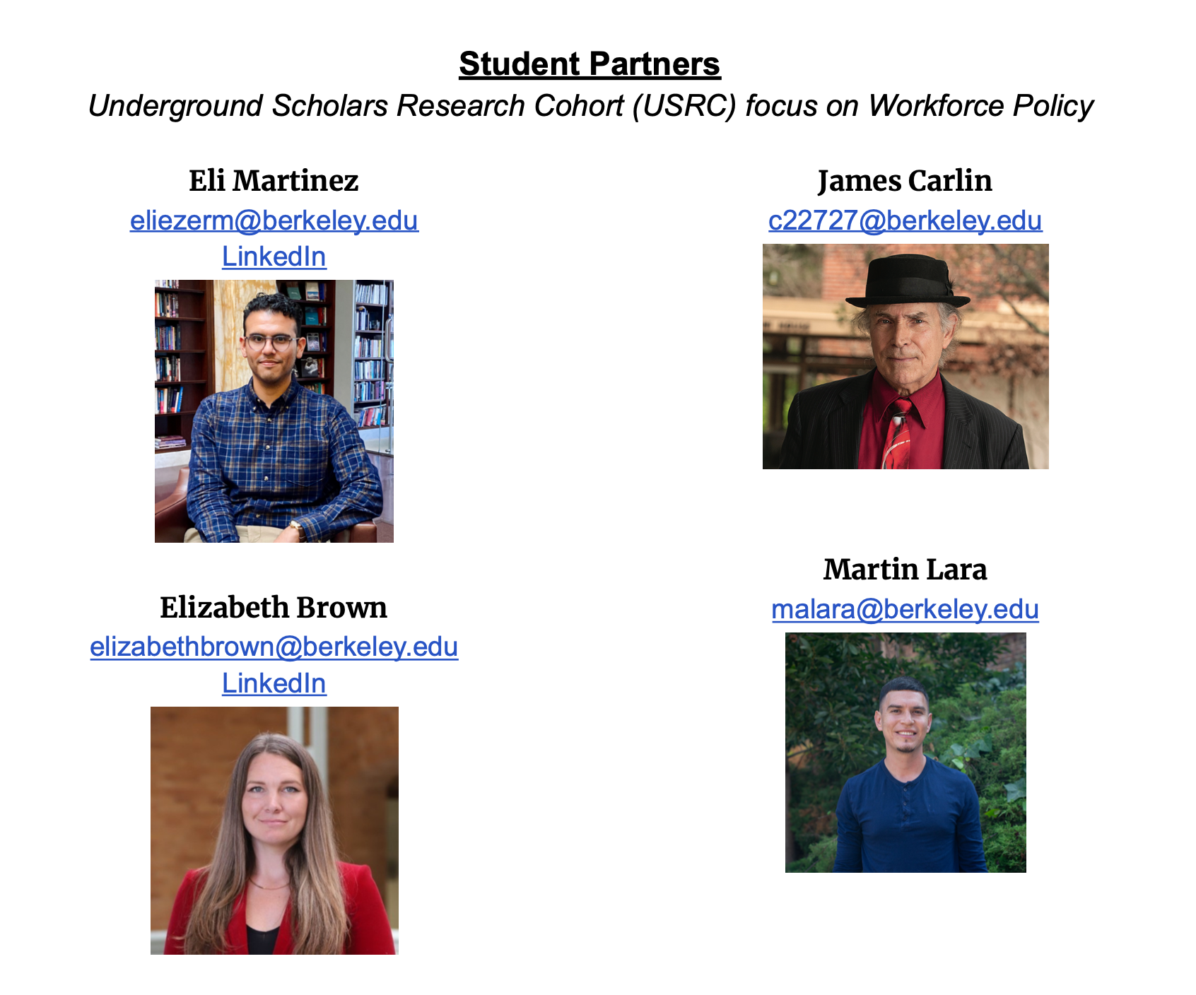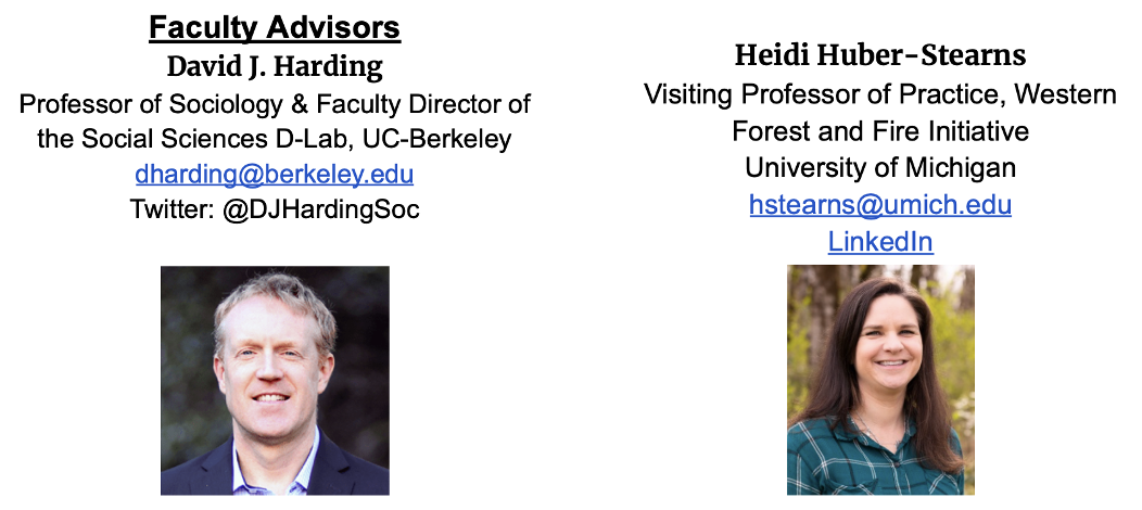 This project brought together an interdisciplinary team of students, faculty advisors, and community partners to reimagine a workforce-led and community-centered transition to living and working with fire in California’s landscape. The project considered how the Forestry and Fire Recruitment Program (FFRP), and similar workforce development programs across the American West, can better serve justice-involved and systems-impacted people while meeting growing demands on the forestry and fire workforce. By facilitating visioning and listening sessions with FFRP’s Career Training Program cohorts, the project identified concrete entry points for future-ready forestry and fire policy and programs to expand engagement and partnerships with justice-involved and systems-impacted people in the San Francisco-Bay area, and beyond. The project will build on and contribute to ongoing initiatives of the Underground Scholars Research Cohort and the Institute for Research on Labor and Employment. Learn more about the project’s outcomes here.